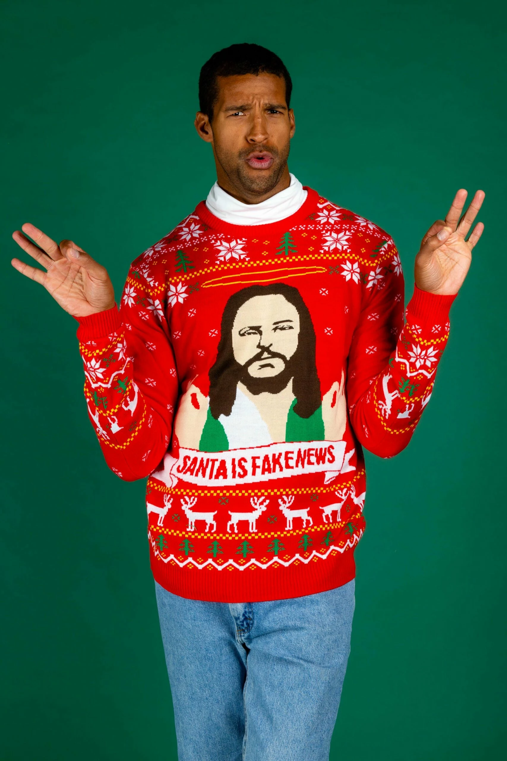 Be the first to review “Santa Is Fake News | Men’s Jesus Christ Xmas Sweater” Cancel reply