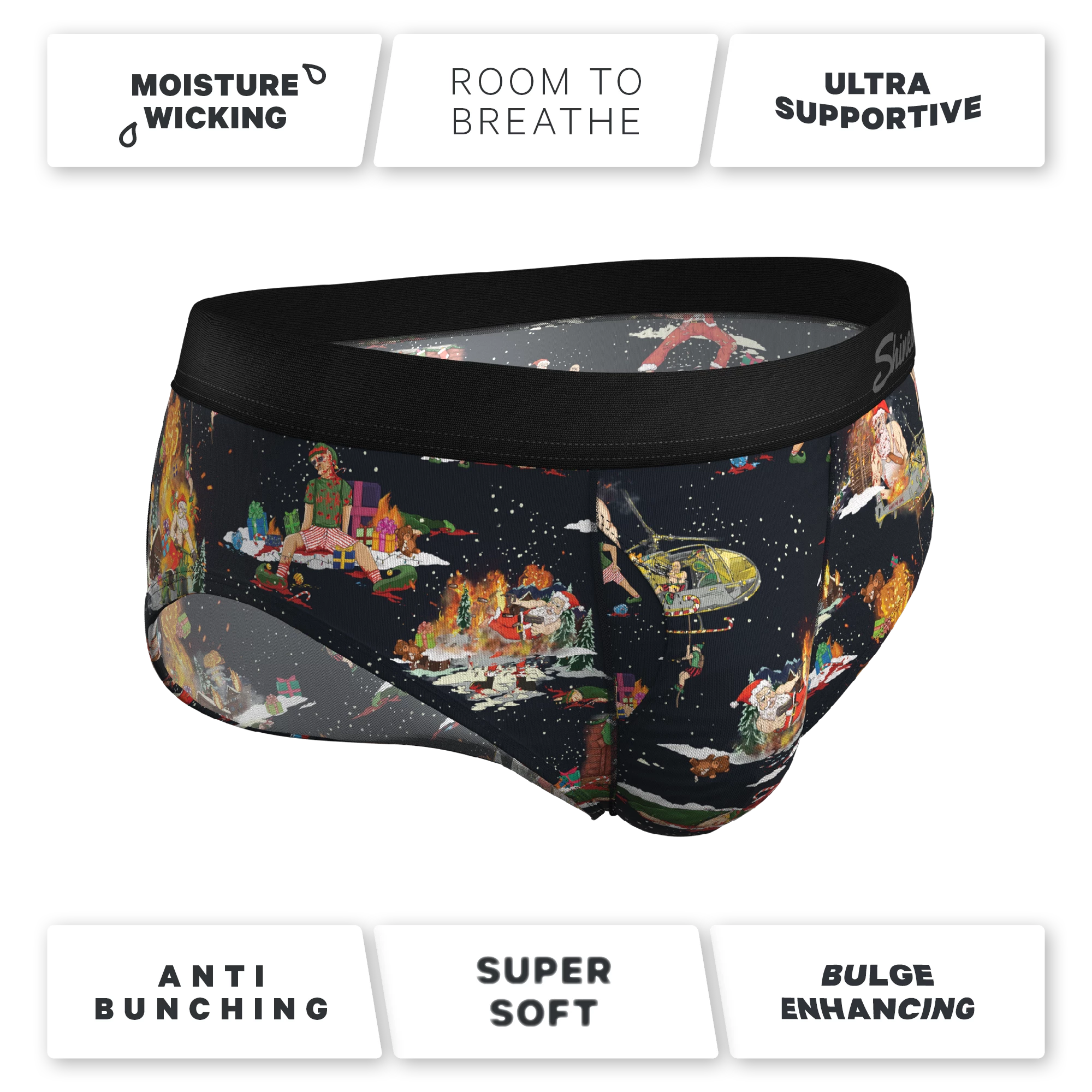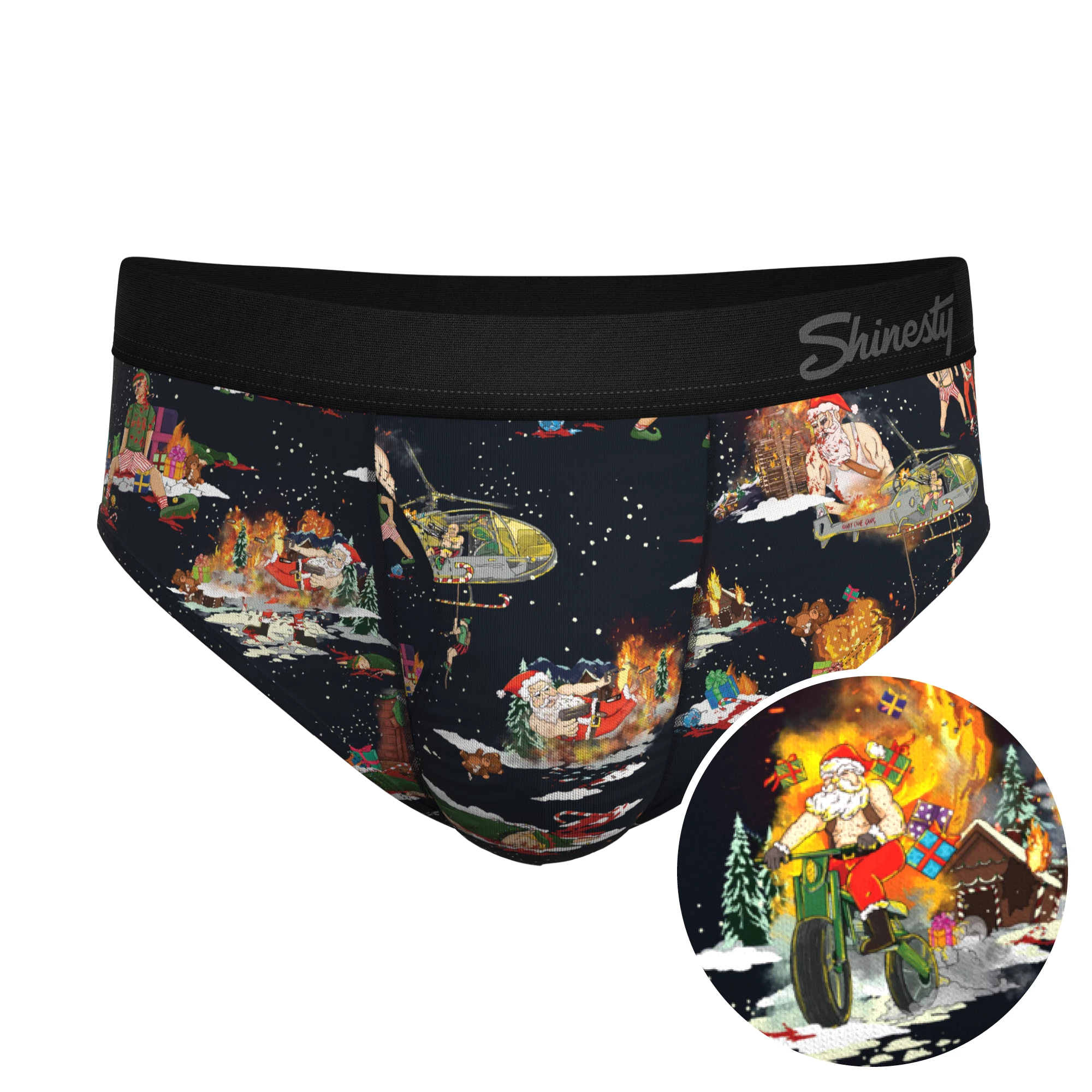 Delivering packages around the entire world in just one night is a stressful job. If you think about it, Santa’s life would be a whole lot easier if fewer people were alive. These Ball Hammock® Pouch Briefs highlight just SOME of the dark fantasies Santa has had about killing us all so he can have just one quiet Christmas Eve at home with his family.