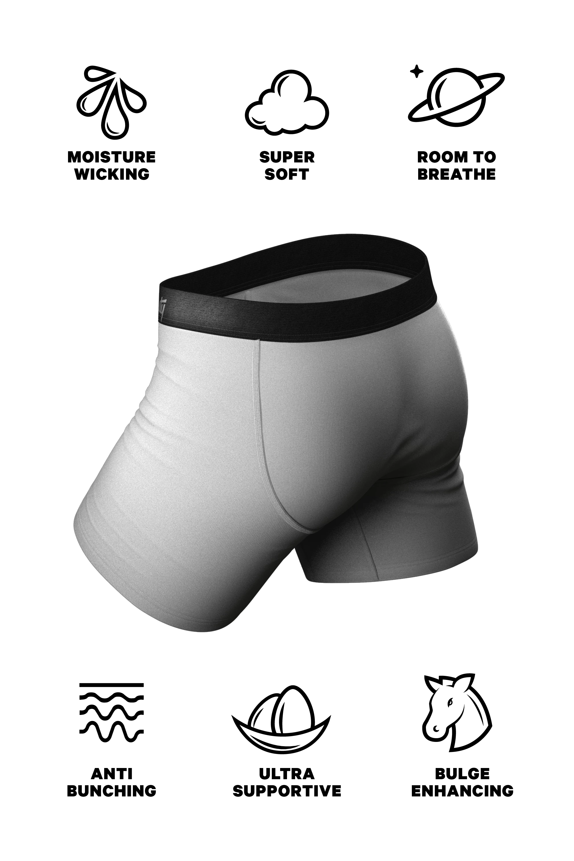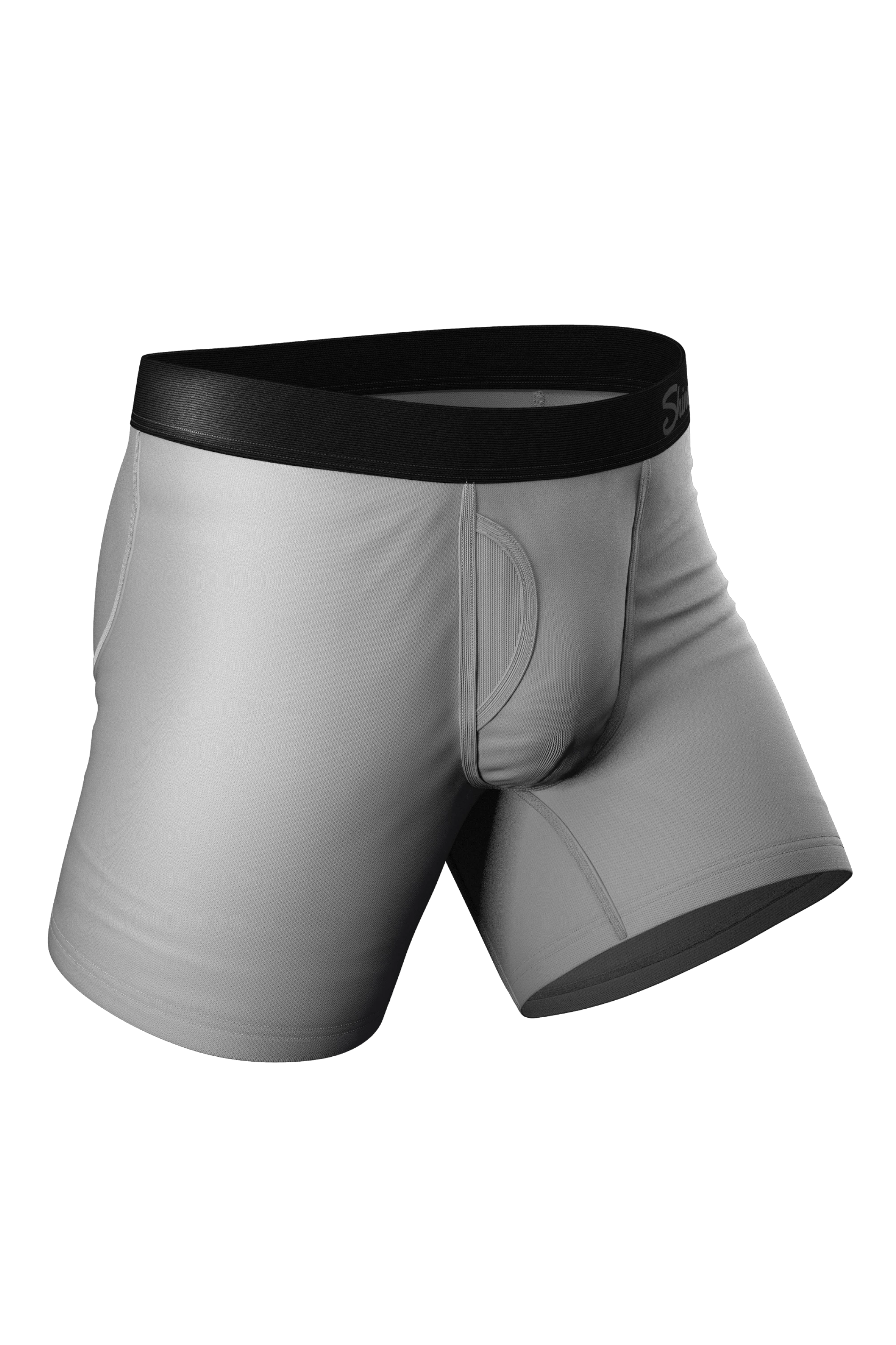 These classic solid grey boxer briefs are a look for an experienced love maker. These puppies will keep the spunk bunkers happier than Christian Grey entering a room full of handcuffs and tassels. Little known fact is that Grey actually kept some silky MicroModal material on a podium right next to the largest “tool” in his collection. For an individual involved in such intense extra-curricular activities, comfort and color neutrality are absolutely key, and according to the research conducted by a dude on our marketing team, this particular shade of grey actually evokes rapid and aggressive emotions of sensuality even amongst the worst of enemies. Whether you’re looking to try something new in the slumber zone or make amends with your ex-best friend from middle school, these grey pouch boxers will keep your stones from interrupting the conversation.