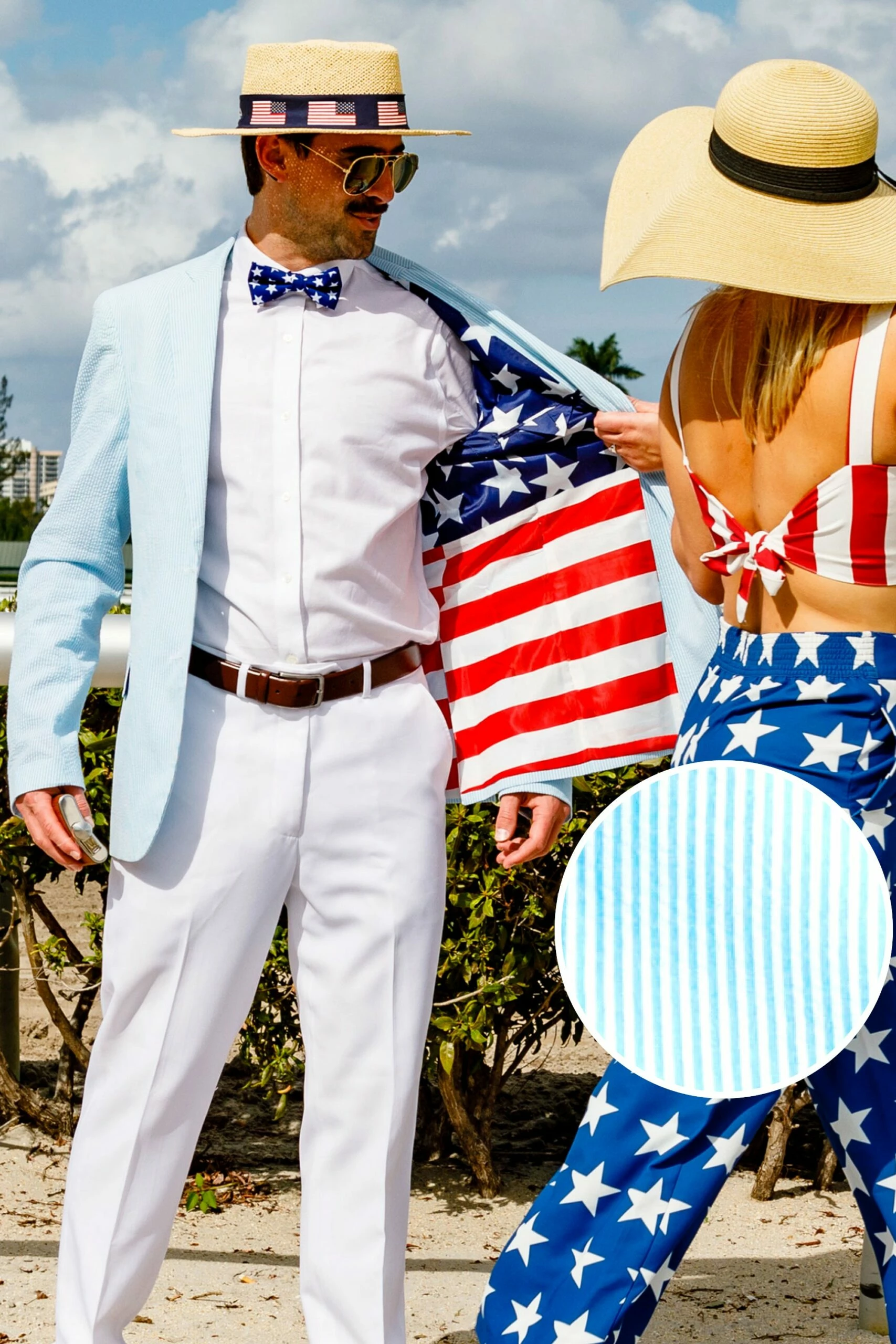 It’s the same blue USA seersucker blazer that you know and love, but we went and made this sucker about as light blue as possible before your grandfather starts questioning your life choices. So don’t worry, this puppy is grandfather approved so you can pass it from generation to generation.