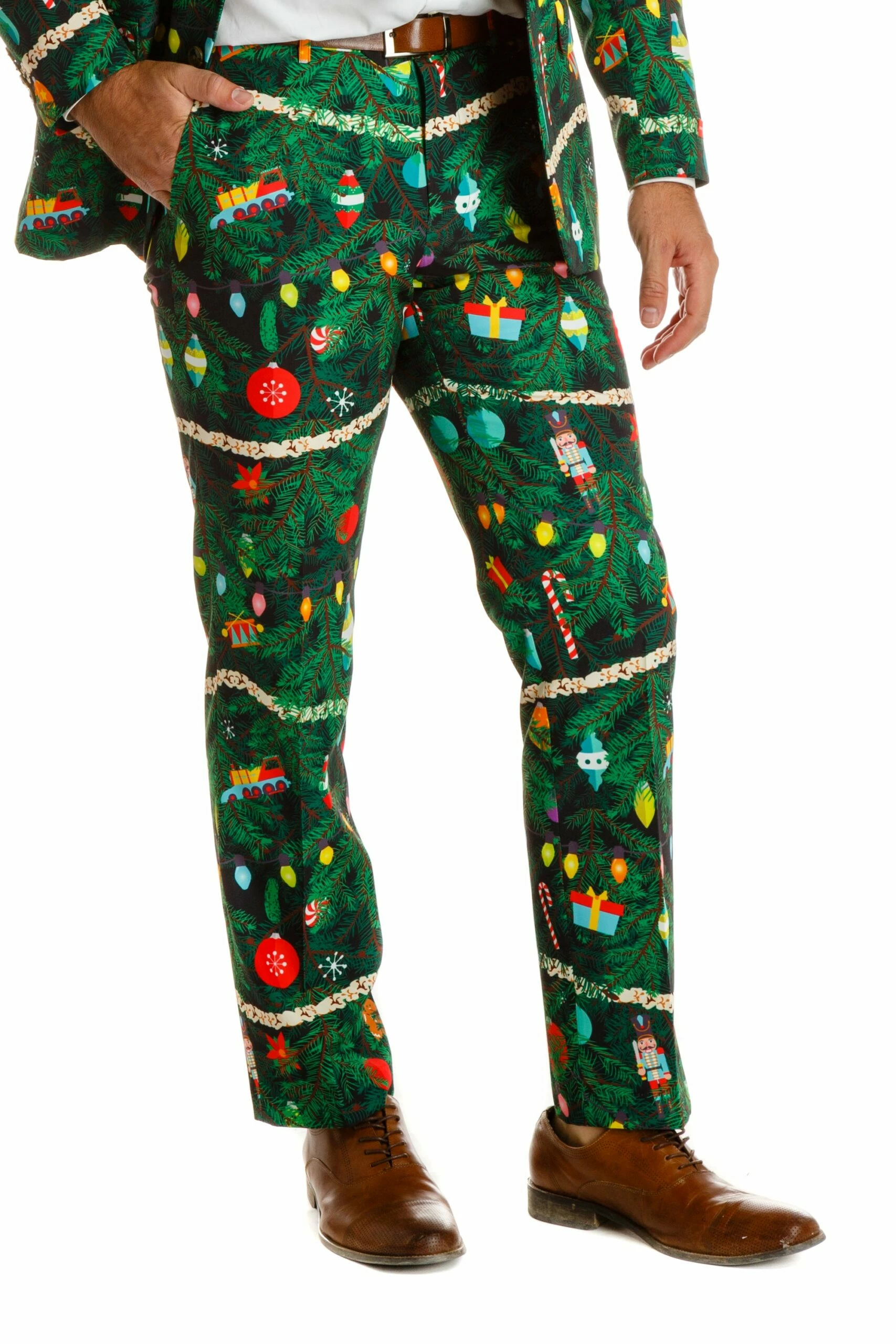 You’re no stranger to incognito mode on your web browser, this is the same thing just IRL. These Xmas tree camouflage suit Pants, along with the jacket, are your only chance to make an escape when it’s too cold to run away from home. It’s a party trick on par with your ability to make all the eggnog disappear. Blend into your most joyous Christmas surroundings and escape all the things that make the holidays truly horrible: carols, the spirit of giving, family, etc.