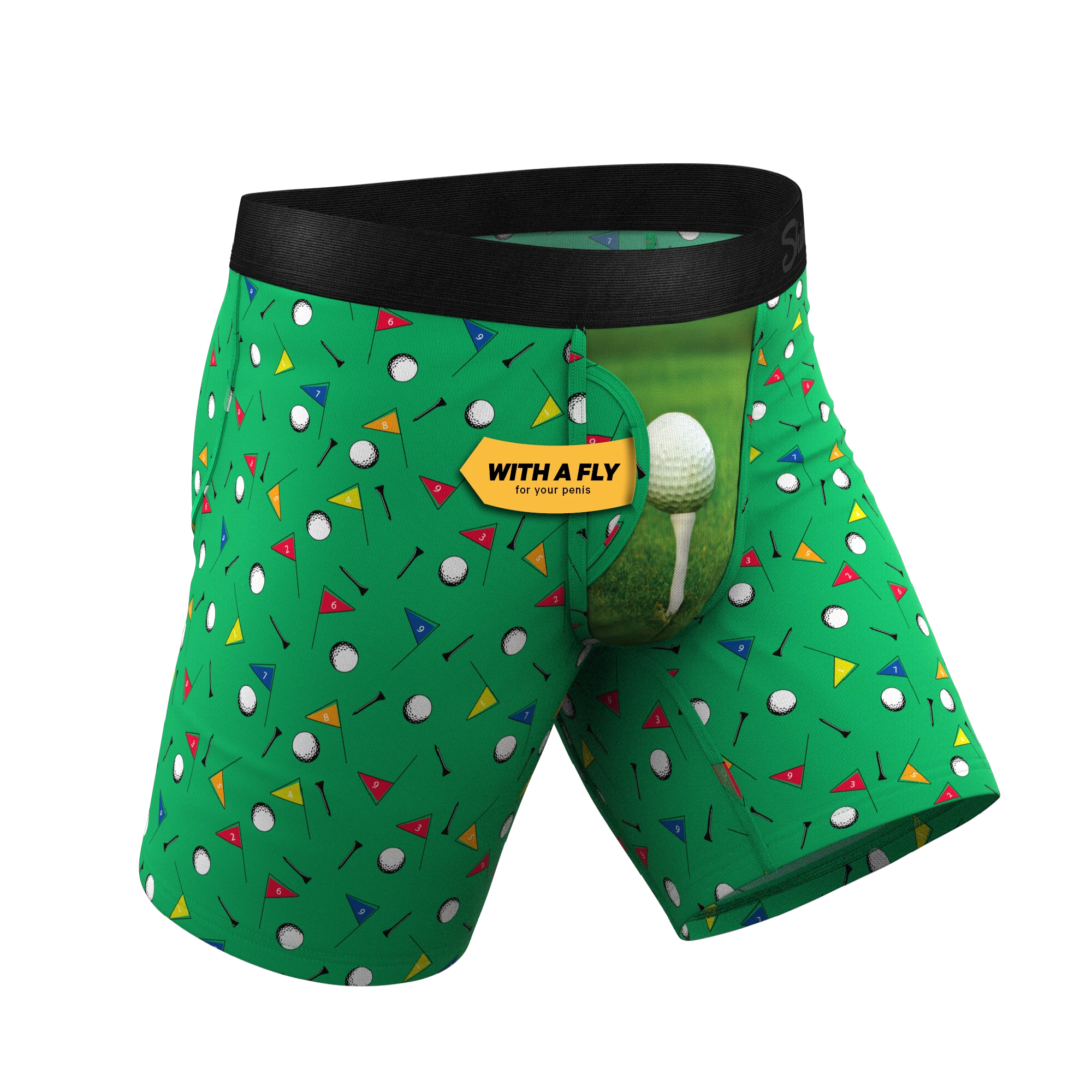 Hit the links in this golf themed Ball Hammock® Pouch Underwear With Fly, featuring your own personal caddy to look after your balls. Because unlike in golf, you really don’t want to get a hole in one.