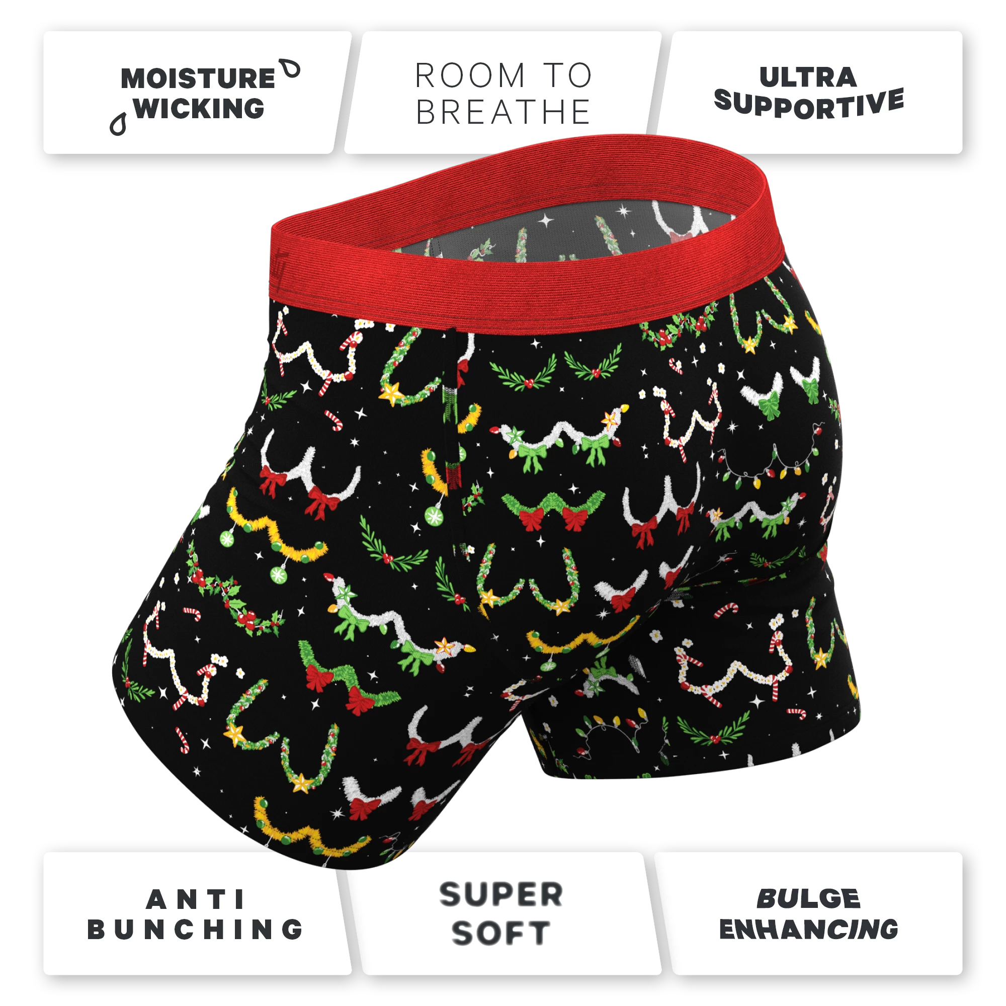 Be the first to review “The Goodie Garland | Christmas Tinsel Busts Ball Hammock® Pouch Underwear With Fly” Cancel reply