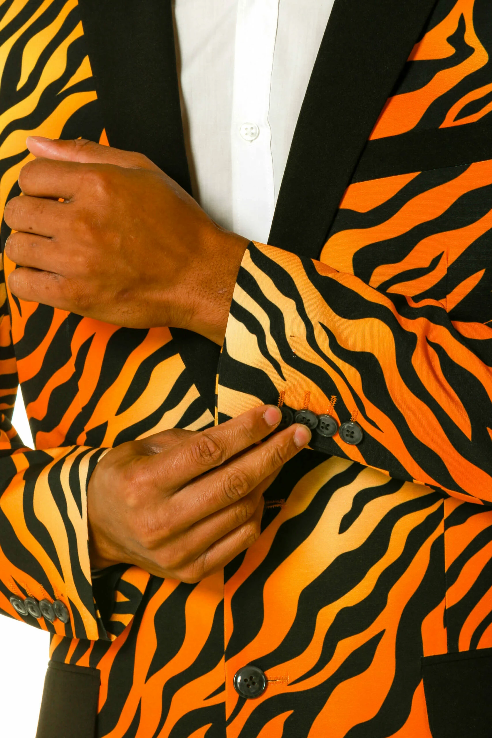 It’s an anomaly how something so outrageous like a tiger costume, let alone an orange tiger suit can make onlookers purr like a kitten in heat. It’s like Tony the Tiger if he were the poster boy for Marlboro Reds and KY instead of pushing some sugary cereal. Sound good? Hell no. With the amount of tail tapping this tiger print suit manifests, it’s more than good, it’s fuggin’ great. Just ask Will Ferrell in “Kicking and Screaming” circa ’05 if you don’t believe me.