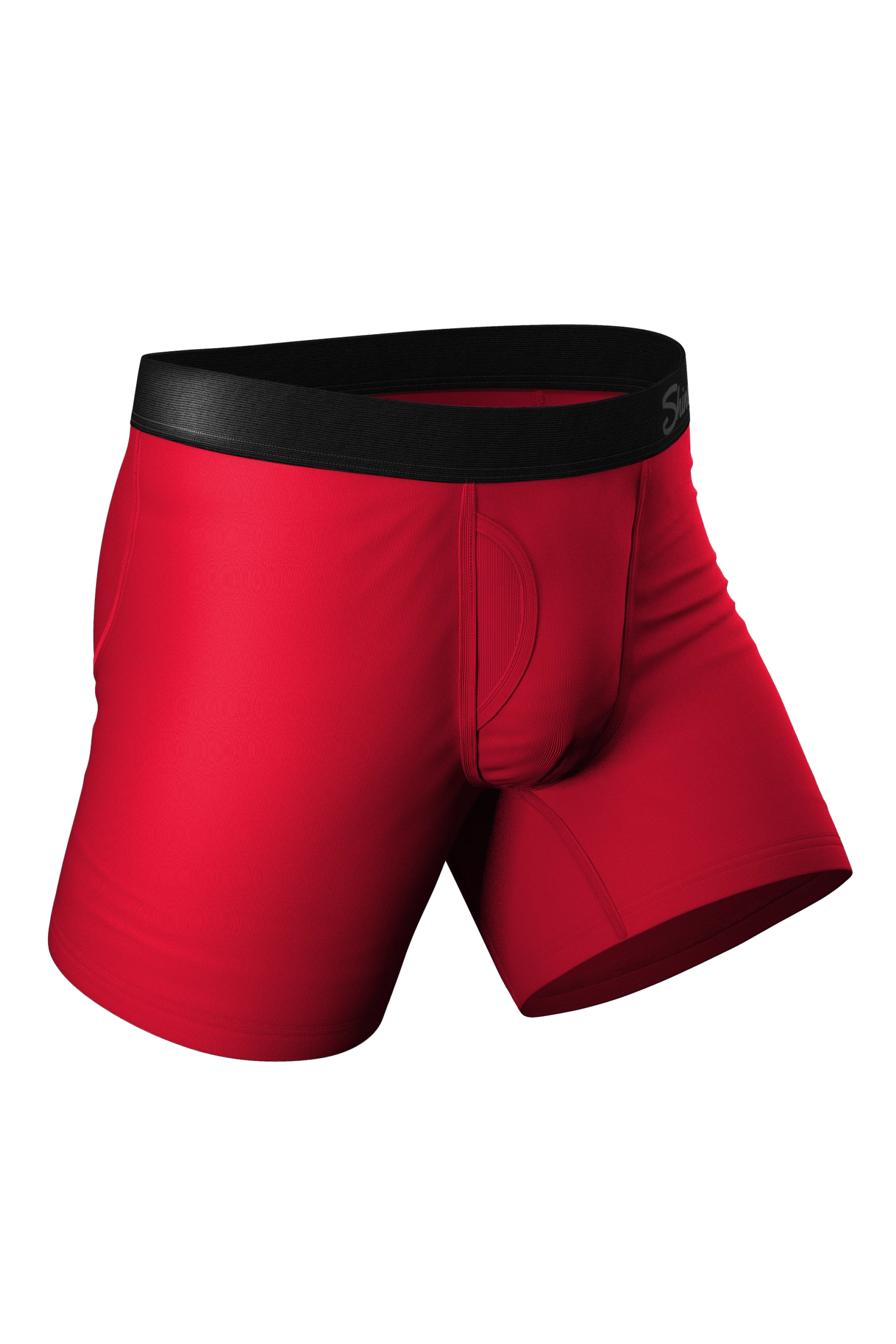 You may have heard of something known as the red dress effect, but we’d like to introduce a new, simpler theory. It’s called the red dong effect, the idea that sliding into a pair of these solid red boxer briefs causes ladies across the globe to flock, and inevitably makes your junk look gigantic. That’s because these nut nesting boxers are the second softest thing you can put your junk in and the last pair of red pouch boxers you’ll ever buy. Why? Because MicroModal fabric is softer than Drake, and Ball Hammock® technology gently lifts the boys out of the grundle, keeping ’em dry and looking big as ever. Do us a favor and give the red dong effect a try, then check out what Men’s Health’s has to say about ’em.