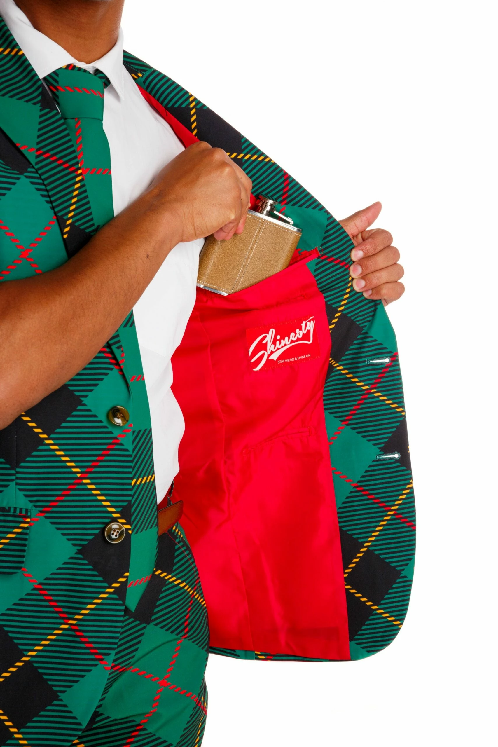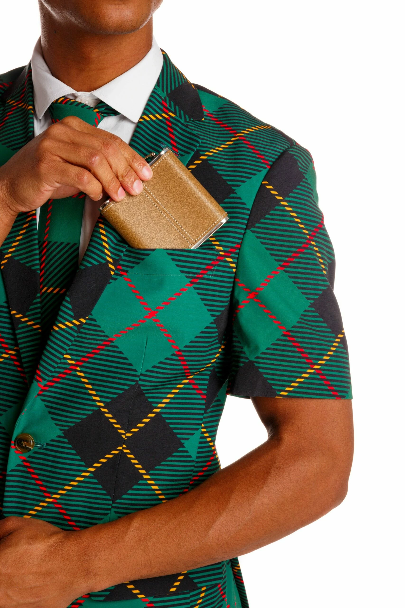 This green plaid Christmas suit was created when Dirty Dangerfield took a trip to down South (no pun intended) to Daytona Beach one weekend. Dangerfield showed some thigh and consequently pays child support for the three Dirty Dangerfield Jrs. that were born 9 months following. Dangerfield’s momma wasn’t too happy when she heard the news, telling him he should of wrapped it up before his chestnuts hit the eggnog. Dangerfield decided a green plaid short suit closely resembling wrapping paper would do the trick. His momma never spoke to him again but he looks sick as f**k at family pictures.
