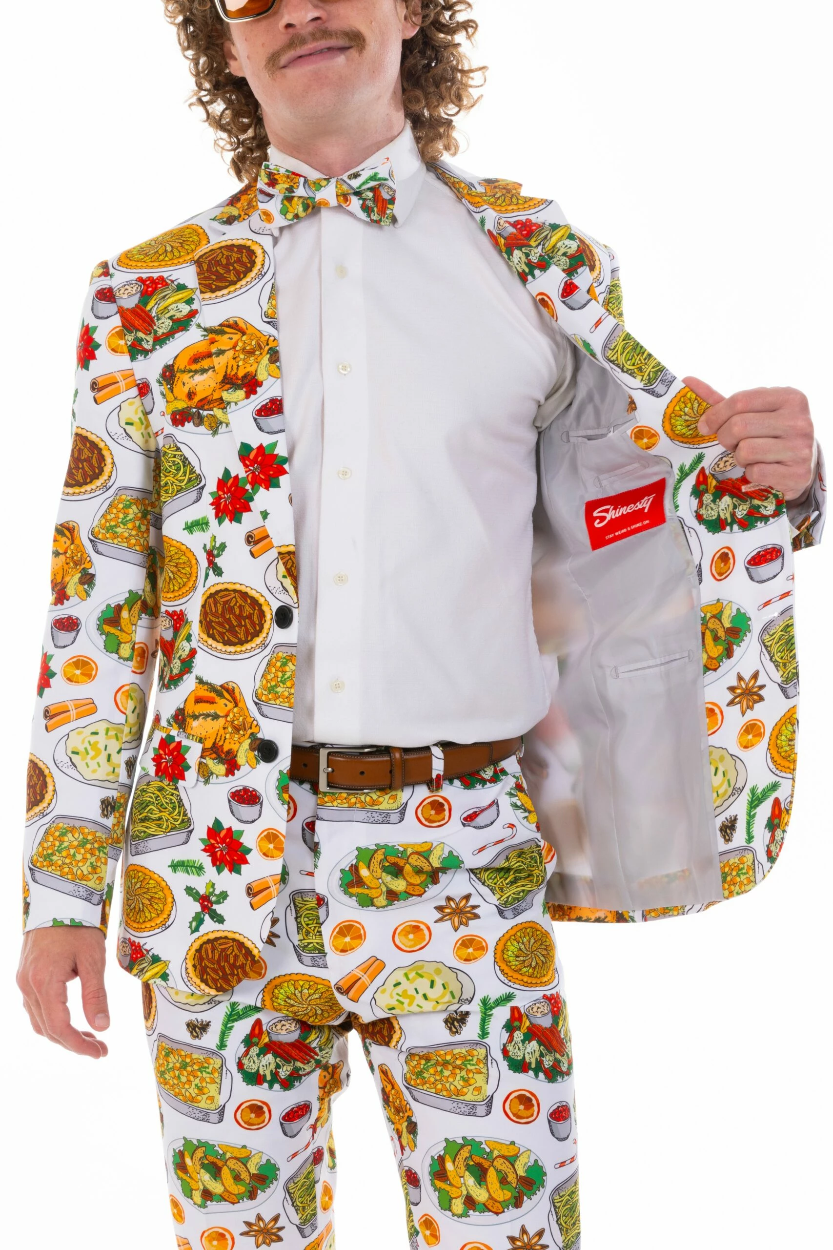 Show up to Thanksgiving this year wearing The Spread suit. You’re the walking menu, an inspirational lil snack to everyone who looks your way. Carry a few hankies in your pocket to hand out to drooling family members.